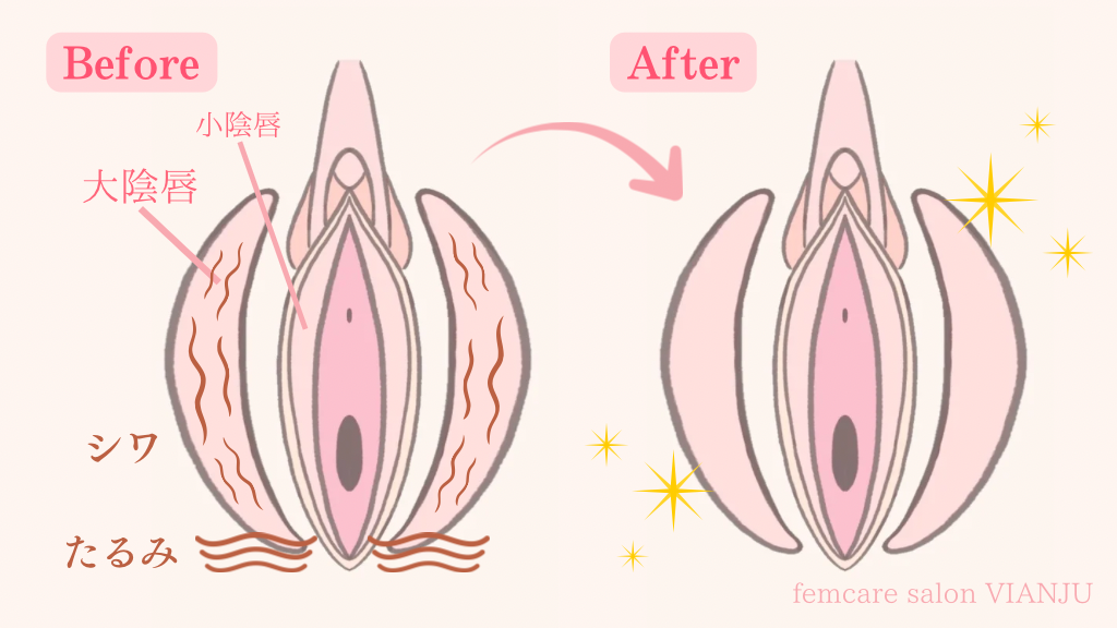 →超音波エネルギーを大陰唇の真皮・皮下組織層へ届けることにより、見える地帯のシワは薄く、たるみはキュッと引き上がり、見た目もスッキリとして綺麗になります。